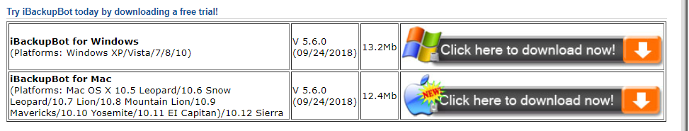 사이트 하단에서 iBackupBot 프로그램을 운영체제(Windows, Mac)에 맞게 선택하여 다운로드 합니다.