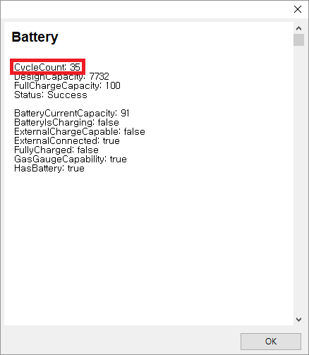 CycleCount가 배터리 사이클이며 제 아이패드의 경우 35번 카운트가 되어있네요.