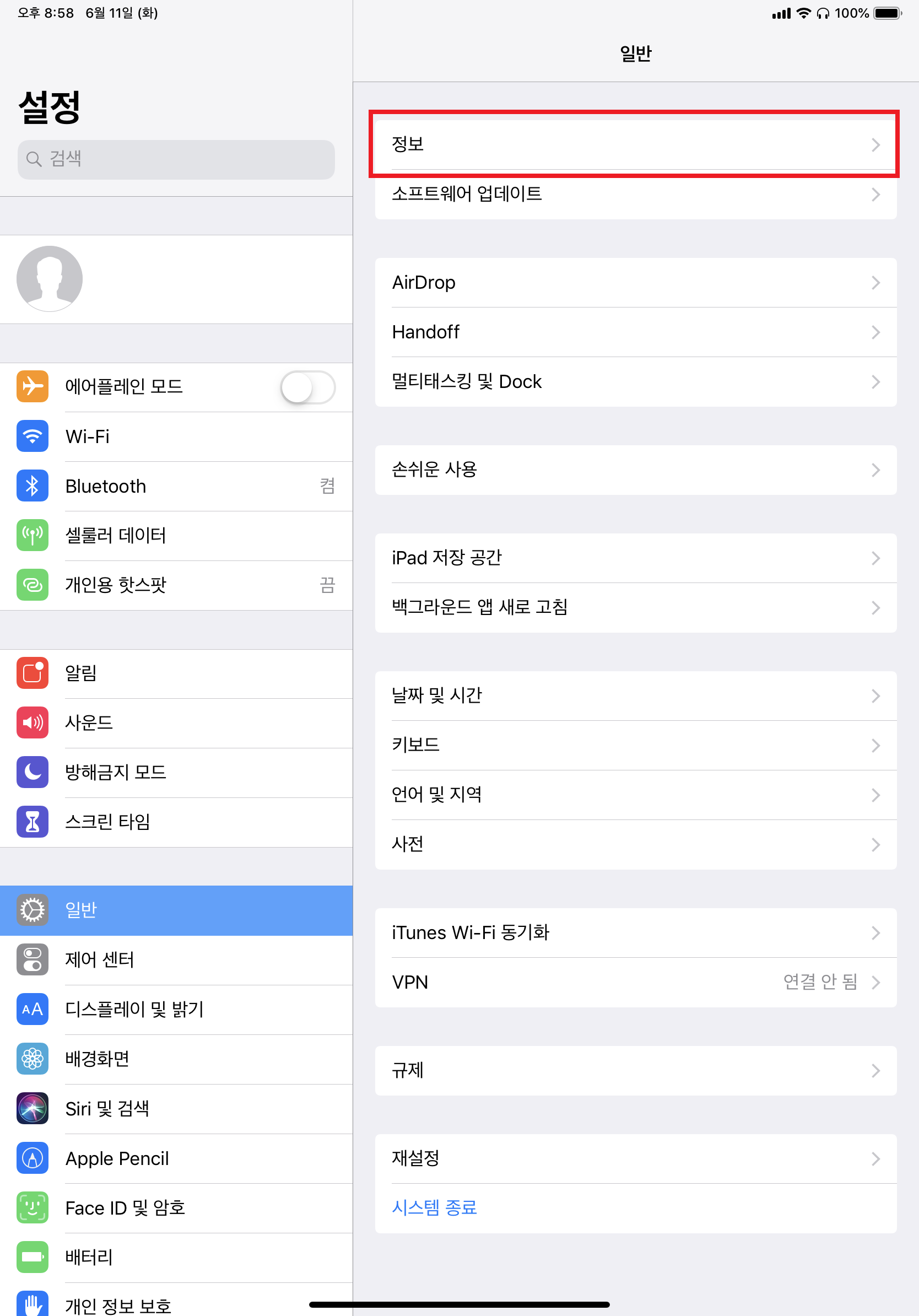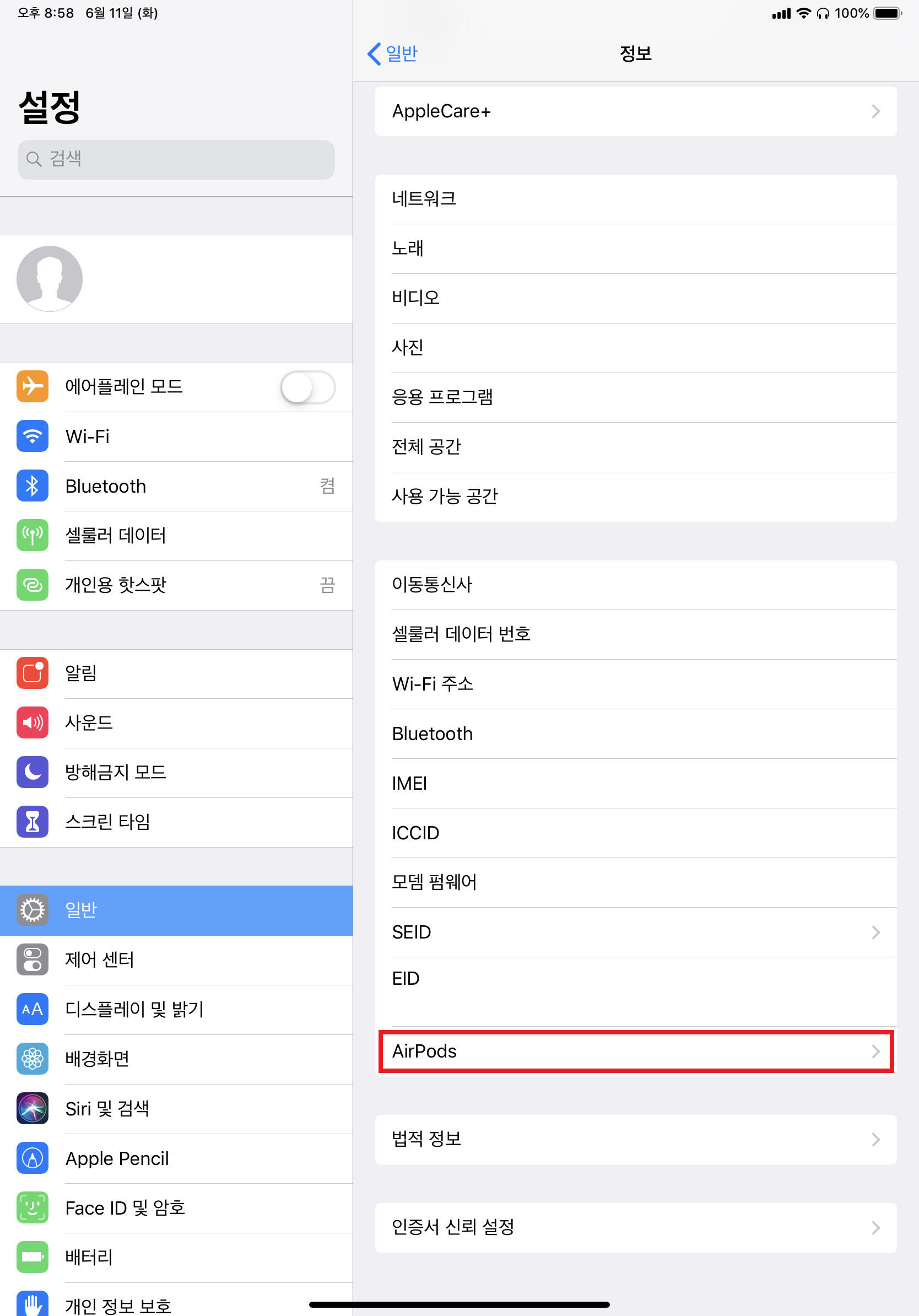 정보 메뉴에서 아래쪽으로 내려보면 AirPods를 찾아 선택합니다.
