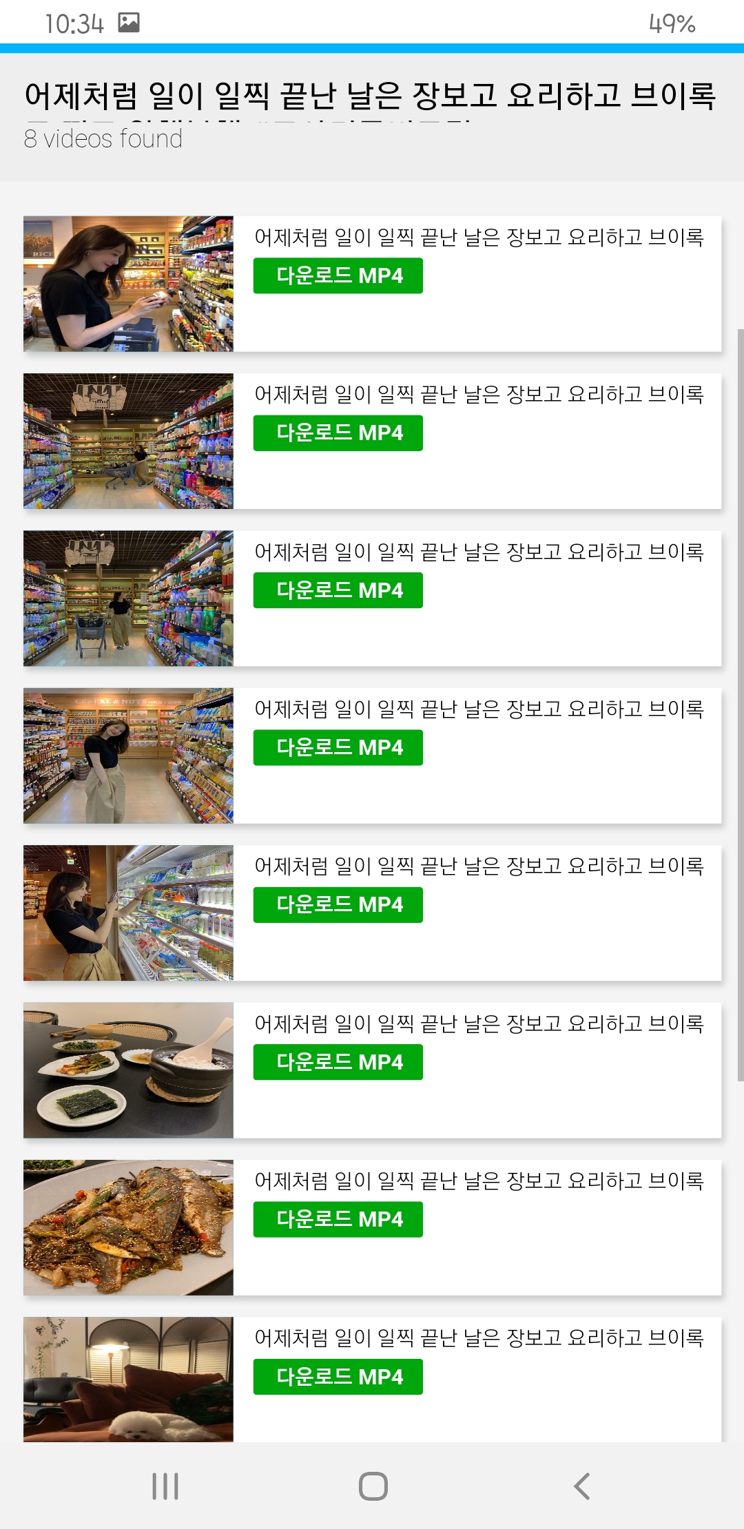 해당 URL에 대한 영상 및 사진 다운로드할 수 있는 리스트가 보이게 되며 다운로드 MP4를 선택하게 되면 영상 다운이 시작됩니다.
