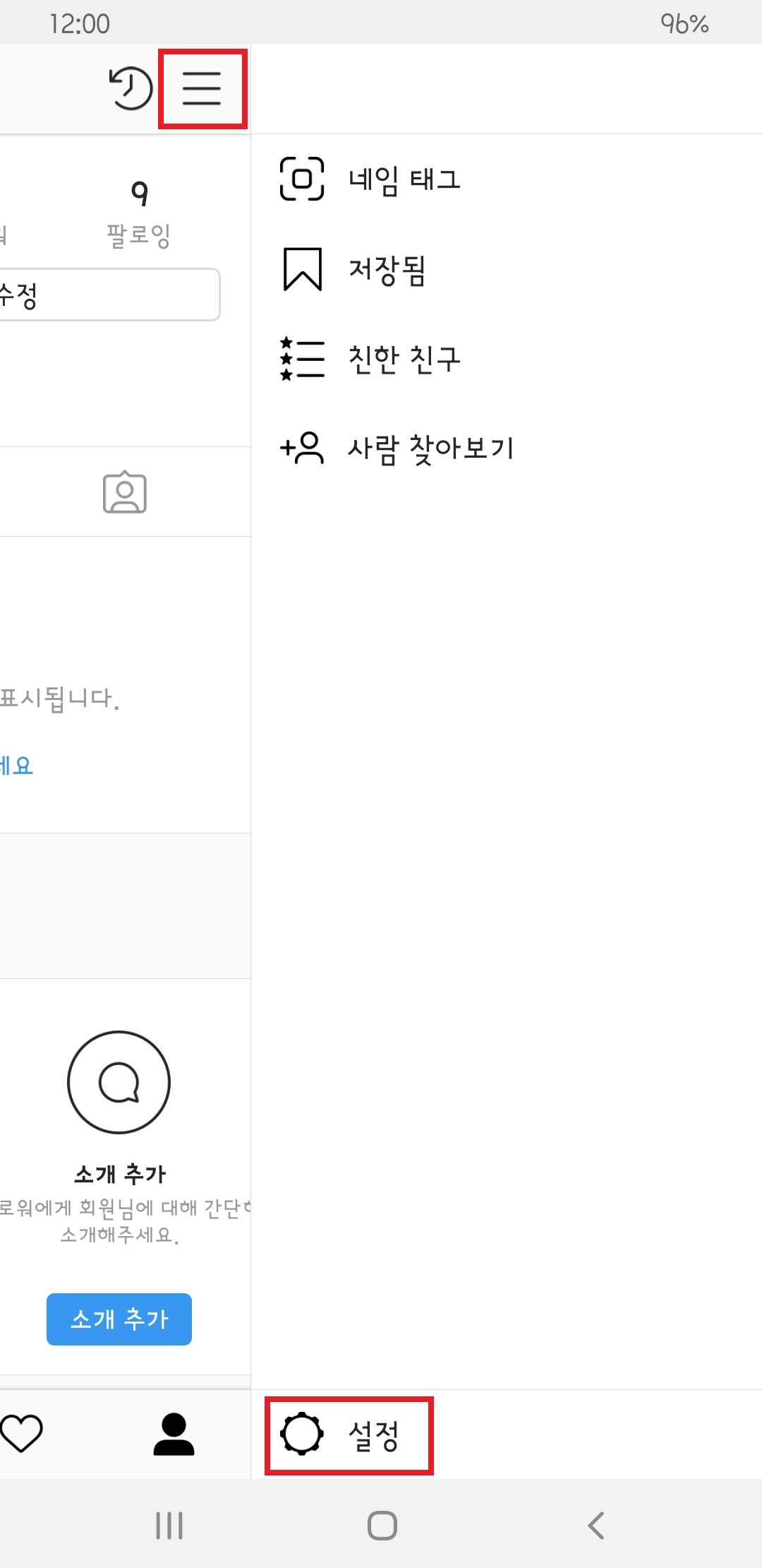 어플을 실행한 뒤 좌측 상단 메뉴 - 설정을 들어갑니다.