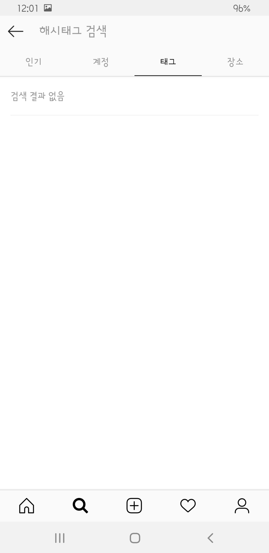 이제 해시태그 검색을 가보면 이전 기록이 삭제되어 검색 결과 없음이 나오는 것을 확인할 수 있습니다.