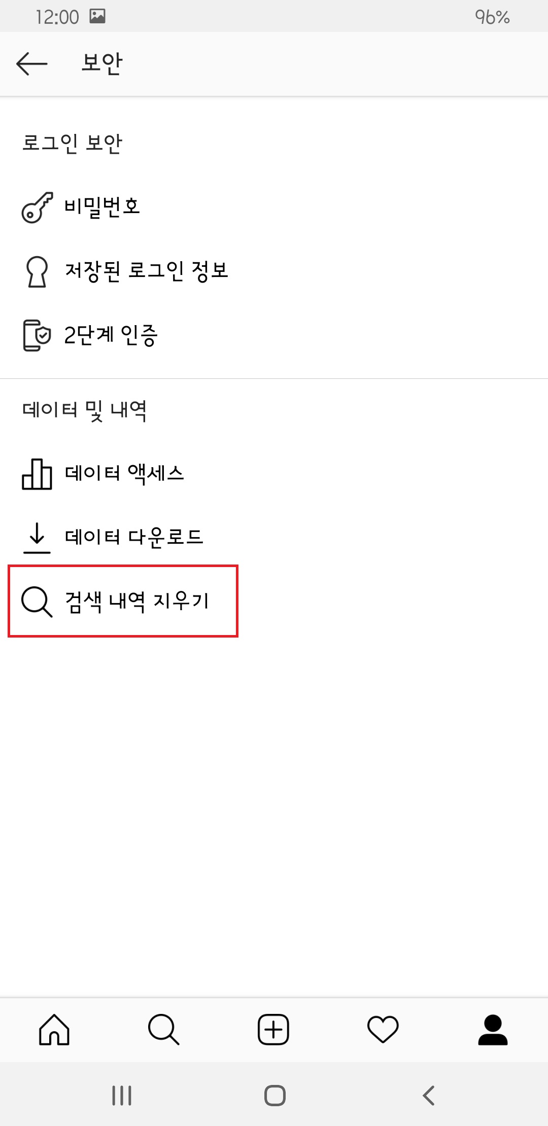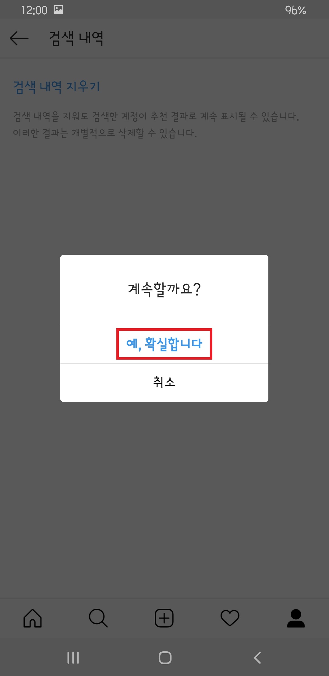 인스타그램 검색 기록 삭제