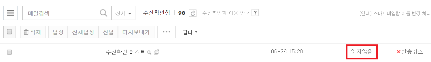 ※ 편지함에서 읽음/안읽음 여부는 수신확인과 상관없습니다.