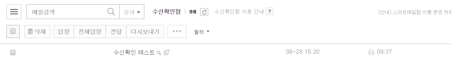 수신확인이란, 메일을 보냈을 때 상대방이 읽었는지, 읽지 않았는지 확인할 수 있는 기능입니다.