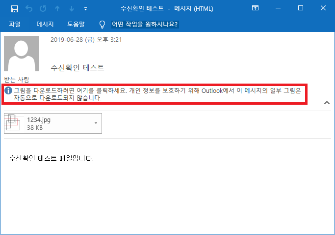 다운받은 eml파일을 열기 위해선 아웃룩이나 썬더버드 같은 프로그램이 필요합니다. 설치 후 eml파일을 열어보면 메일 내용 및 첨부파일을 확인할 수 있습니다. 아웃룩 기본 설정이 이미지 다운로드 및 호출이 안되도록 되어있기 때문에 수신확인 용 이미지를 호출하지 않아서 수신확인 기능이 무력화된 것입니다.
