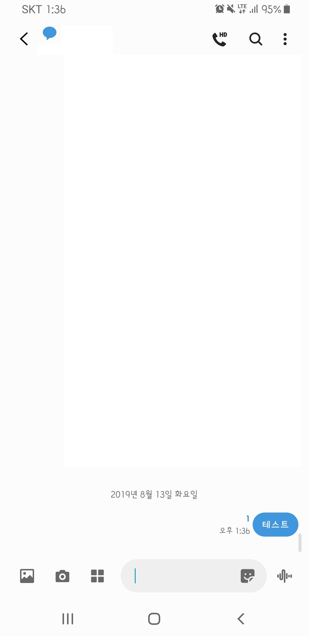 이렇게 문자 내용을 볼 때도 상단에 파란색 말풍선이 있으며 문자를 보내고 나면 숫자 1이 있어 문자 읽음 여부를 확인할 수 있죠.