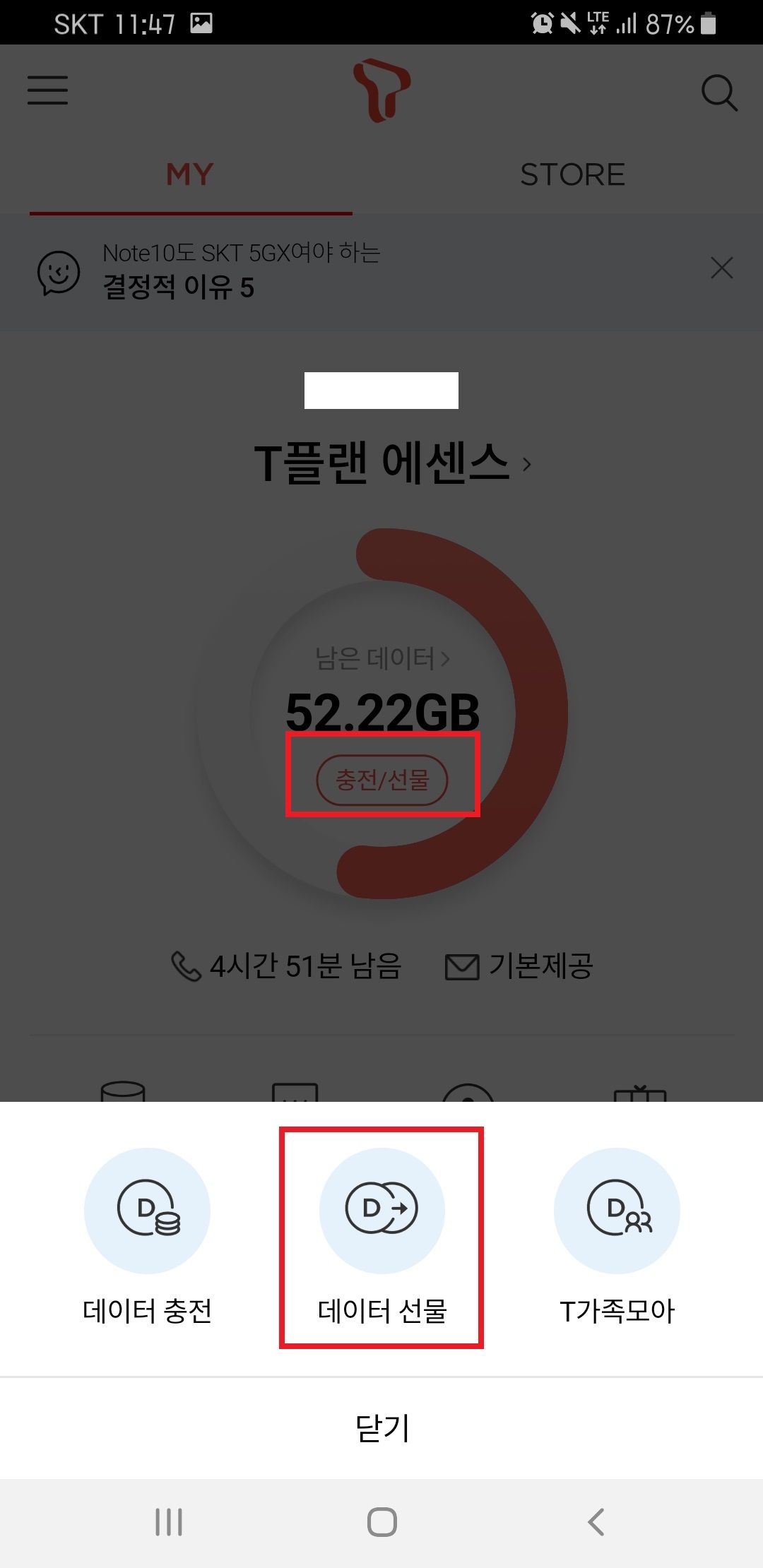 SKT 데이터 선물하는 방법