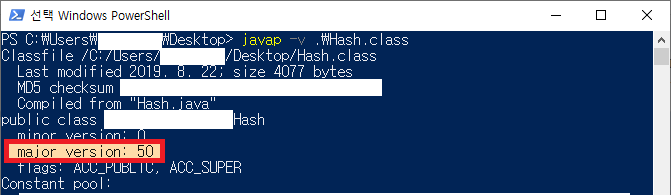 결과는 바로 나오며 major version 부분을 확인하여 자바 버전을 확인할 수 있습니다.