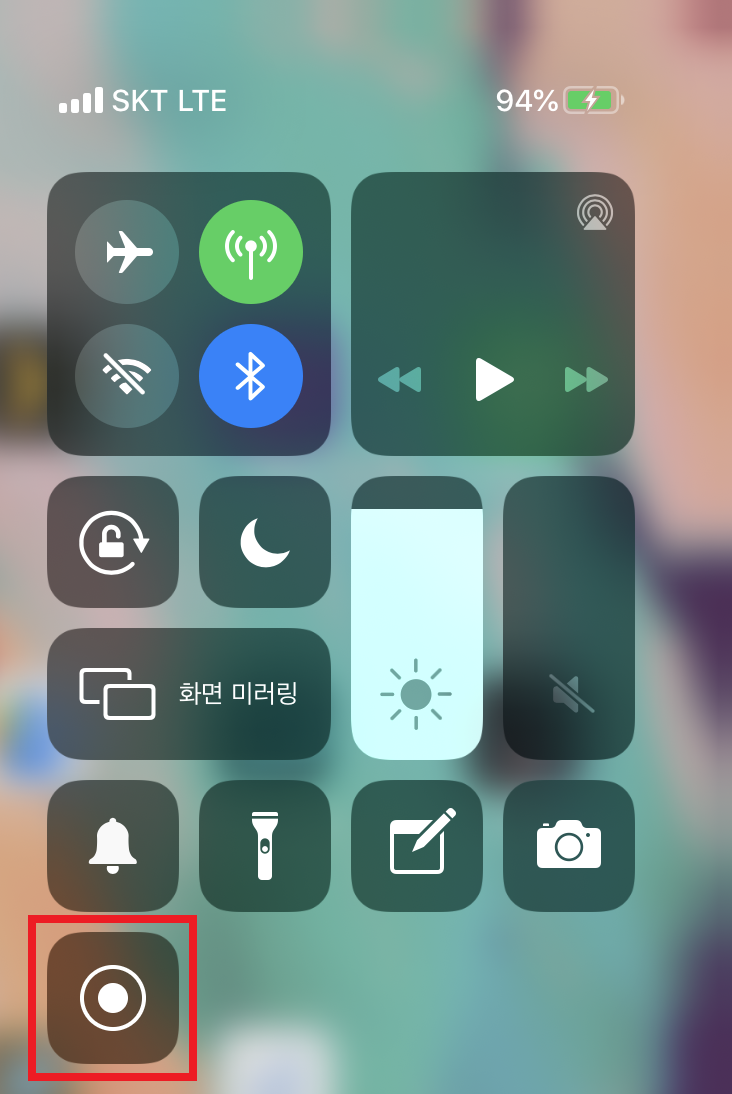 이제 화면 가장자리를 내릴 경우 이제 화면 기록 아이콘이 추가된 것을 볼 수 있습니다.