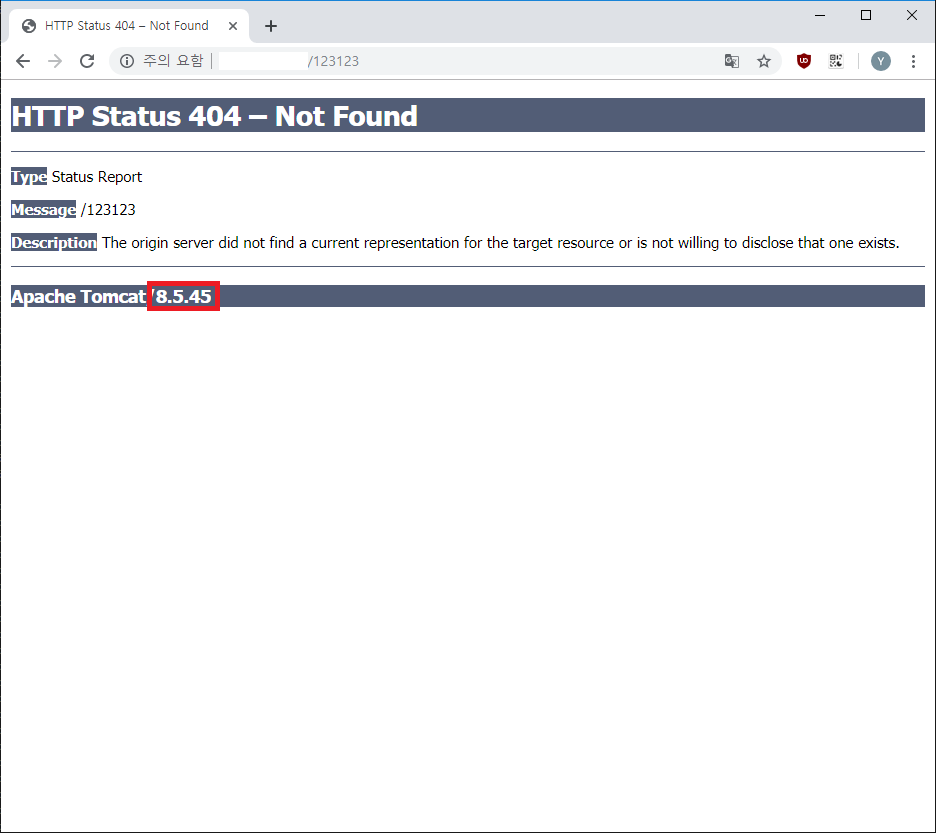 이후 tomcat을 재구동하면 웹페이지에도 반영이 되어 더 이상 버전 정보가 노출이 되지 않습니다.