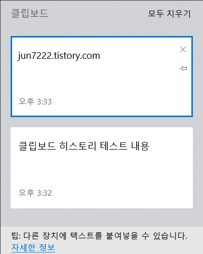 윈도우10 복사,붙여넣기 클립보드 히스토리 히스토리 남기기