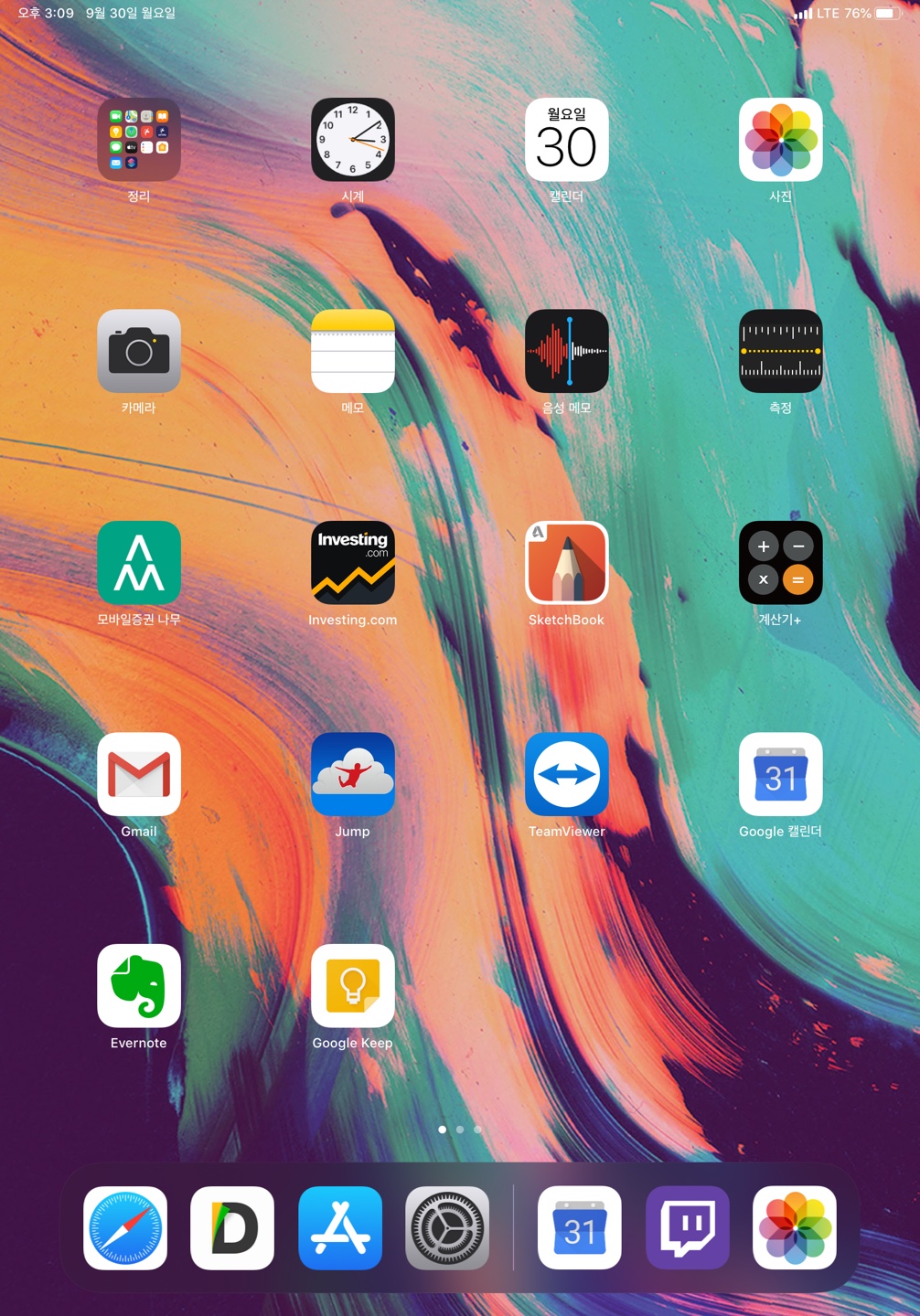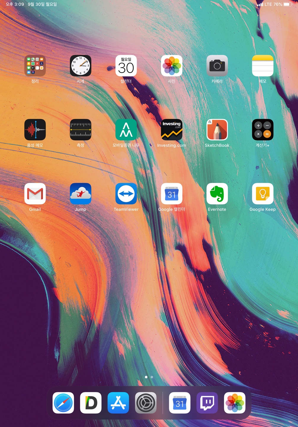 '더 크게'의 경우 가로 4개, 세로 5개로 총 20개를 표시합니다. 이 설정으로 하니 옛날 아이패드 홈 화면을 보는 듯한 느낌이 드네요.