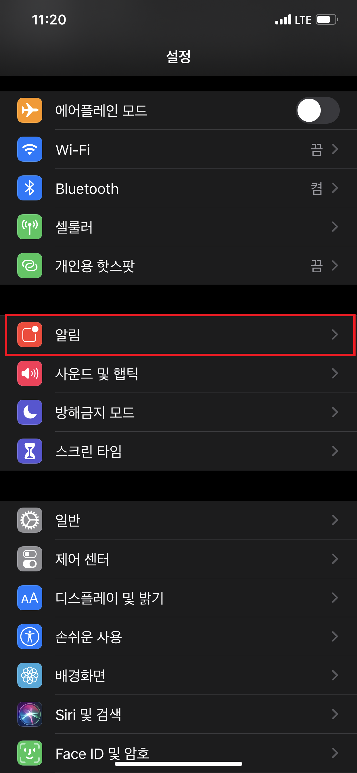 설정 - 알림에 들어갑니다.