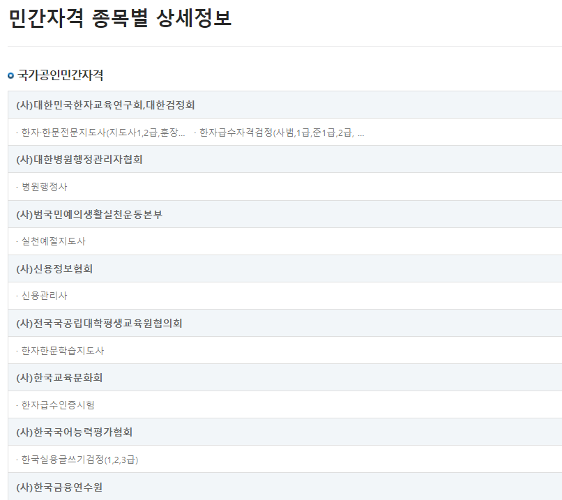 만약, 위 달력에 맞는 자격증 일정이 없을 경우엔 국가공인민간자격에서 찾아봐야 합니다. 특히 11월~12월에 경우 시험계획이 끝나있음.