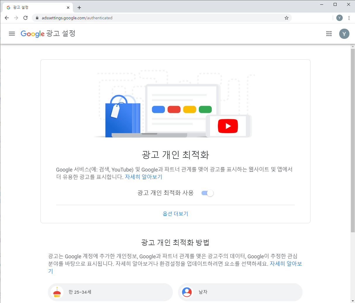 웹 서핑을 할 때 구글 배너 광고가 최근에 검색했던 내용, 또는 관심있는 분야의 내용의 광고가 나오는 경우가 많습니다. 이것은 구글 광고 개인 최적화 기능 때문입니다.