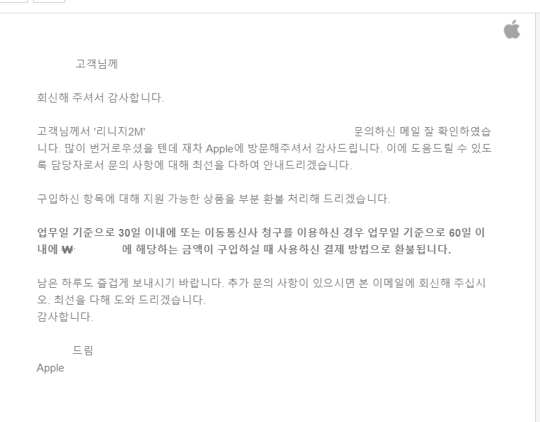 애플 ios 게임 리니지2m 인앱결제 환불신청 방법