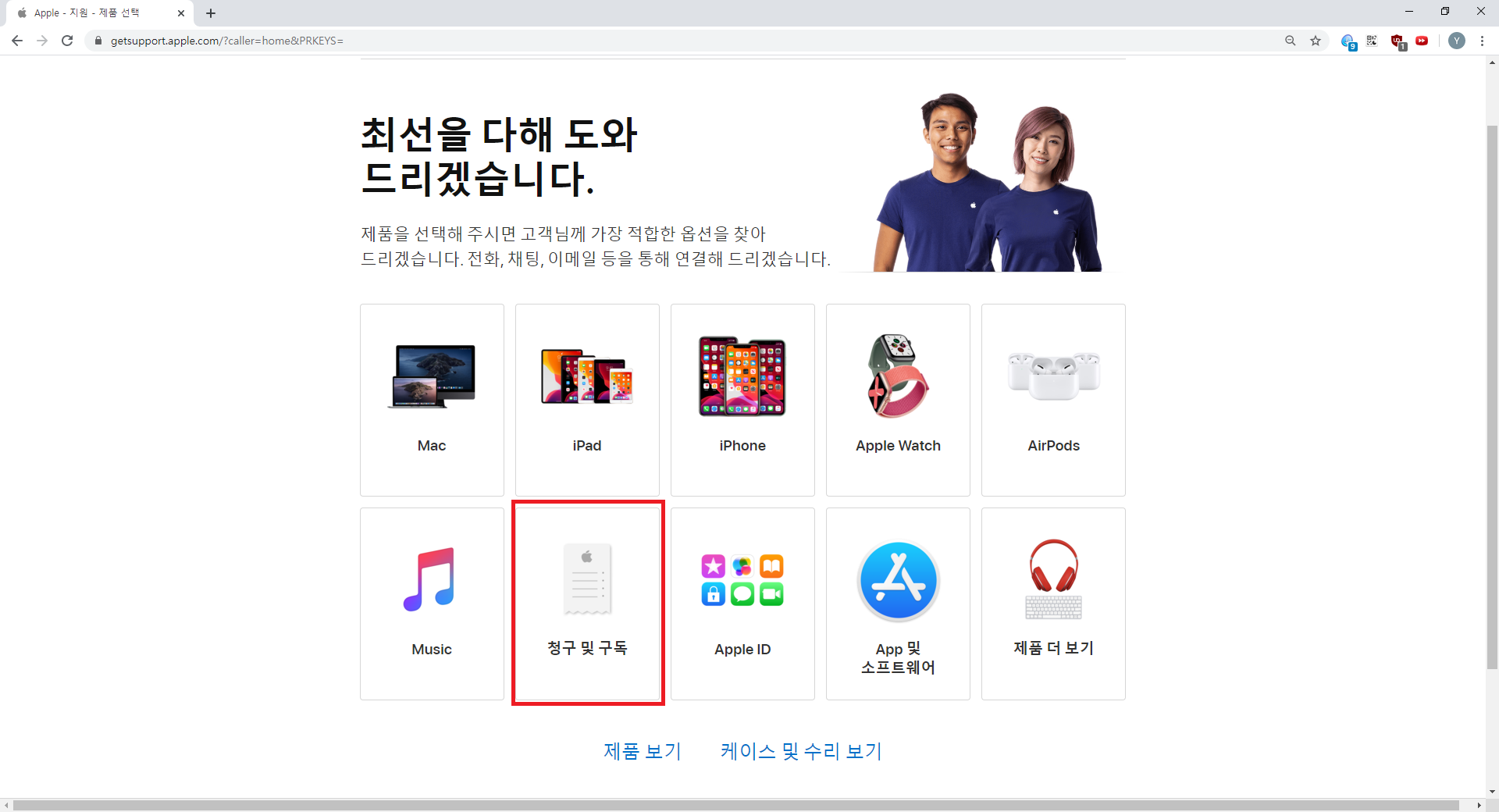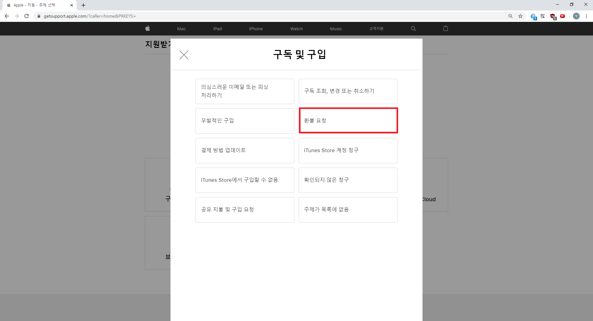 여기서 권장인 환불 요청하기 대신, 이메일을 선택해야 합니다.