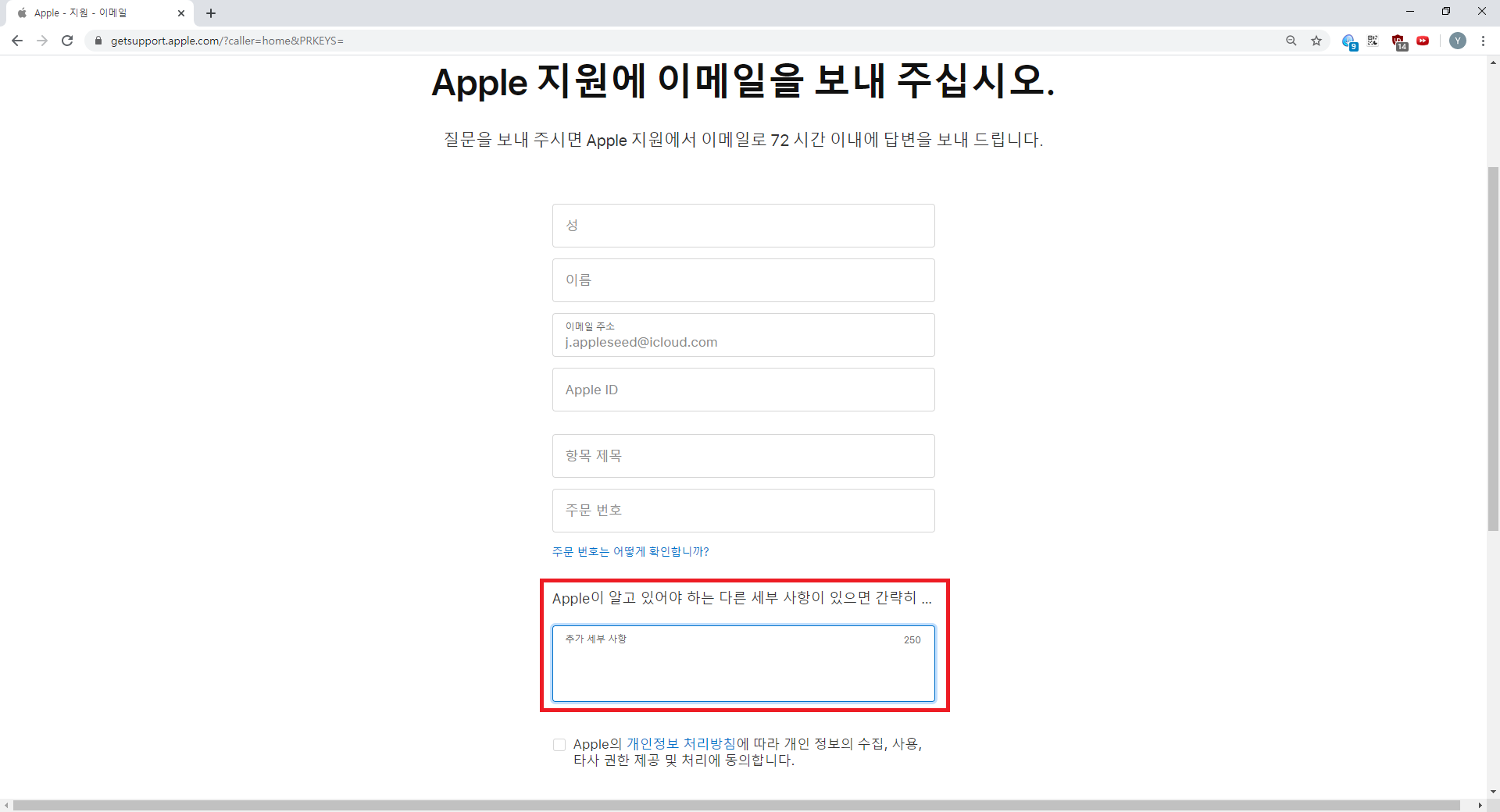 또한 주문번호를 작성하지 않을 경우 답장 온 메일에다가 주문번호를 작성해서 다시 보내야 하기 때문에 처음 문의를 작성할 때 주문번호를 작성하는 것이 처리가 더 빠릅니다.