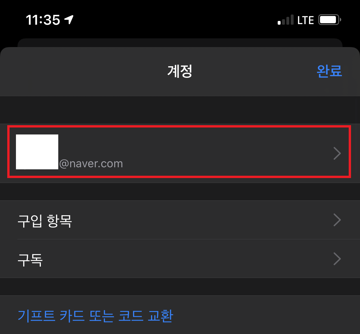 상단 계정 정보가 있는 영역을 선택합니다.