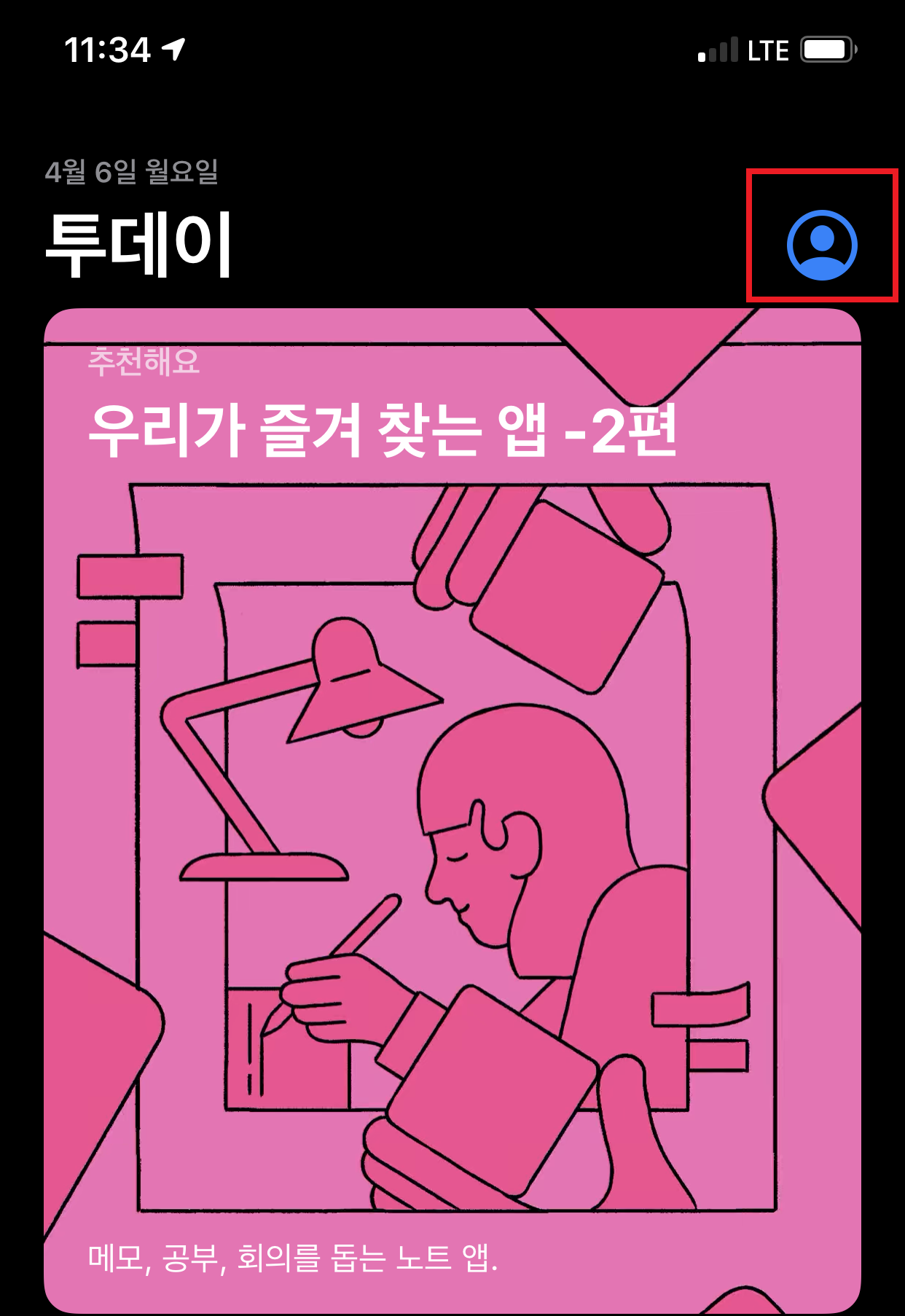 먼저 앱스토어에 들어간 후 우측 상단 계정 아이콘을 선택합니다.