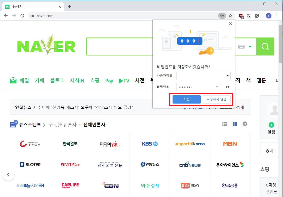 그래서 저는 브라우저 기능인 비밀번호 저장 기능으로 편하게 사용하고 있습니다. PC나 스마트폰에서나 연동도 되고 편리~