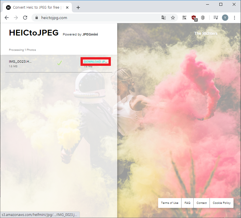 위 링크로 이동해서 변환하고자 할 HEIC파일을 업로드 한 뒤 JPG확장자로 다운받으면 됩니다.