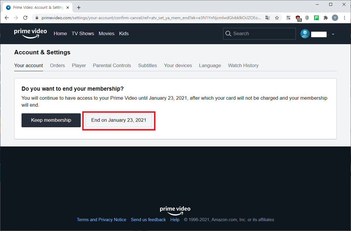 아마존 프라임 비디오 해지하기