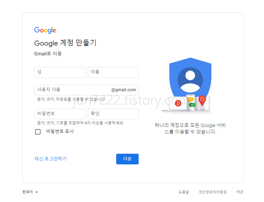 구글 지메일 깡통 계정 생성 방법