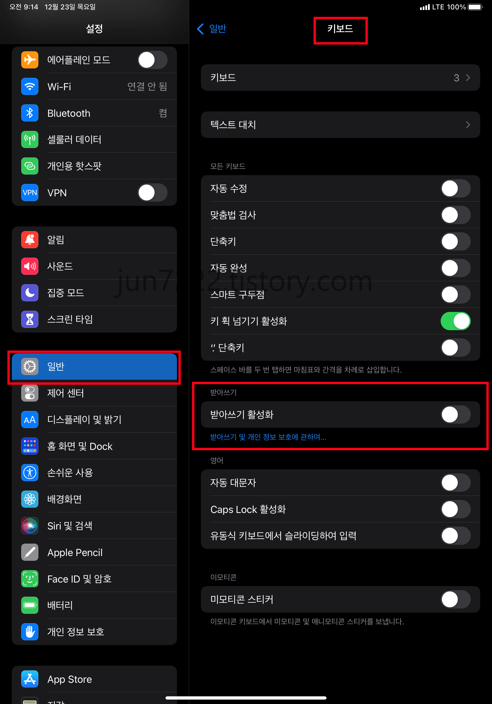아이폰, 아이패드 받아쓰기 활성화 끄는법
